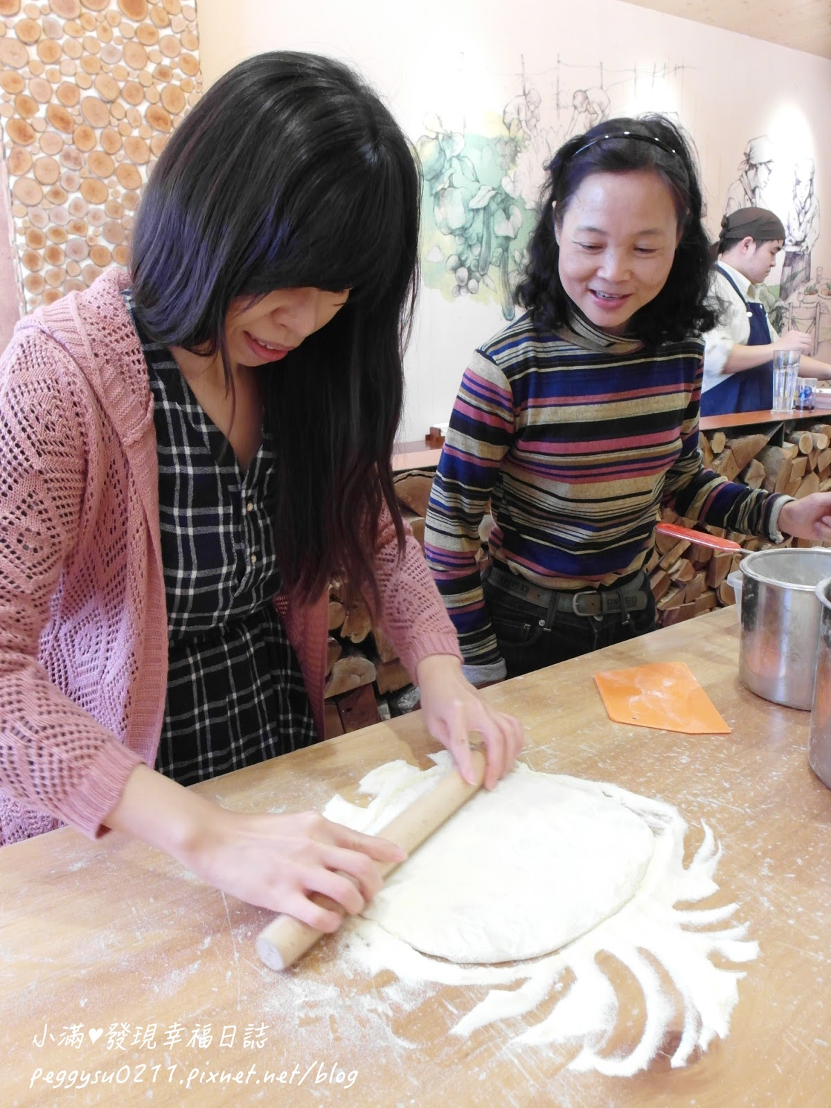 但其實....我們擀過頭,擀太薄了啦 >"< 師傅說這樣烤起來會太乾不好吃