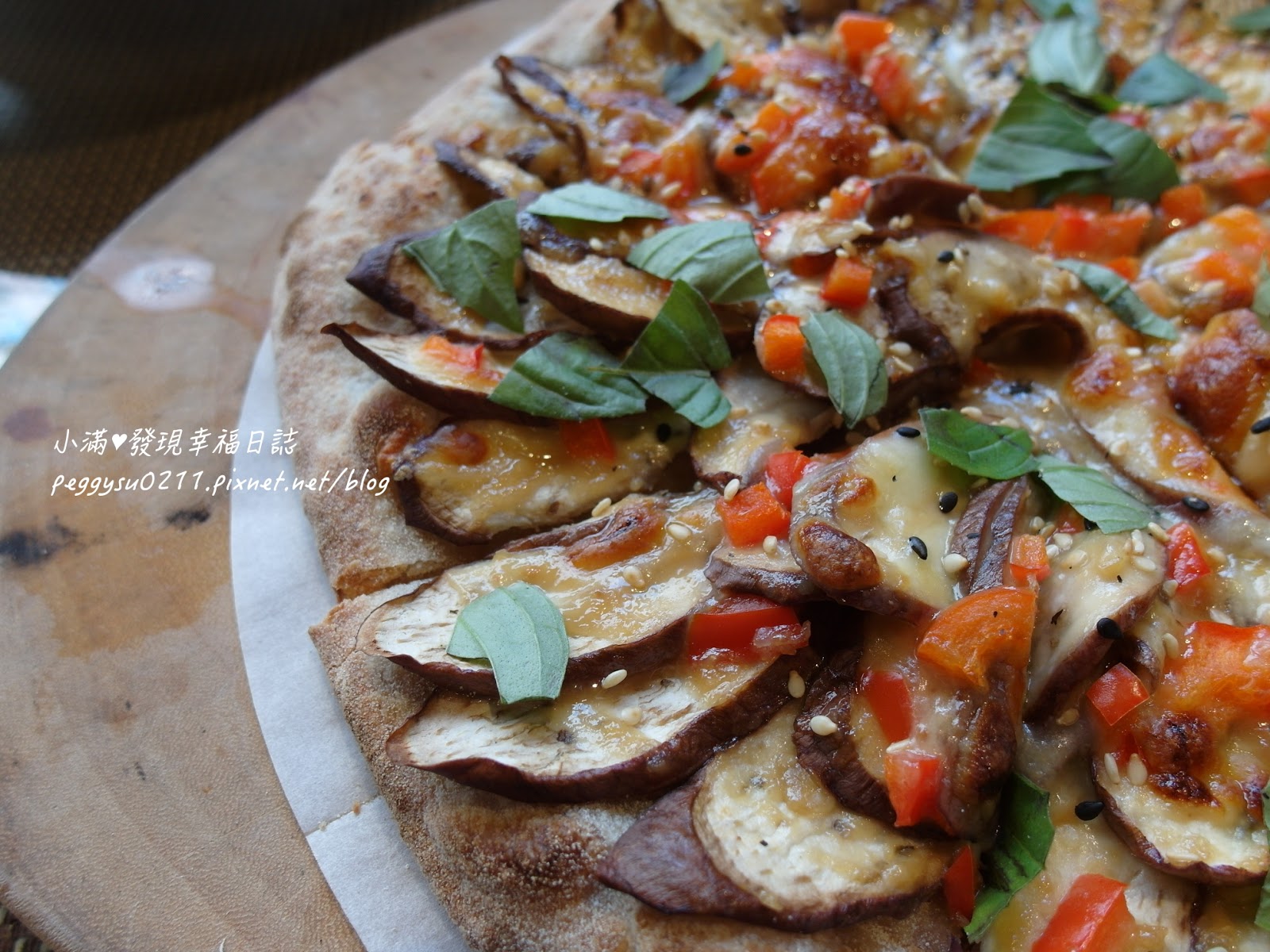 被小滿吃一半的披薩,底層是味噌跟花生醬調製而成的醬汁