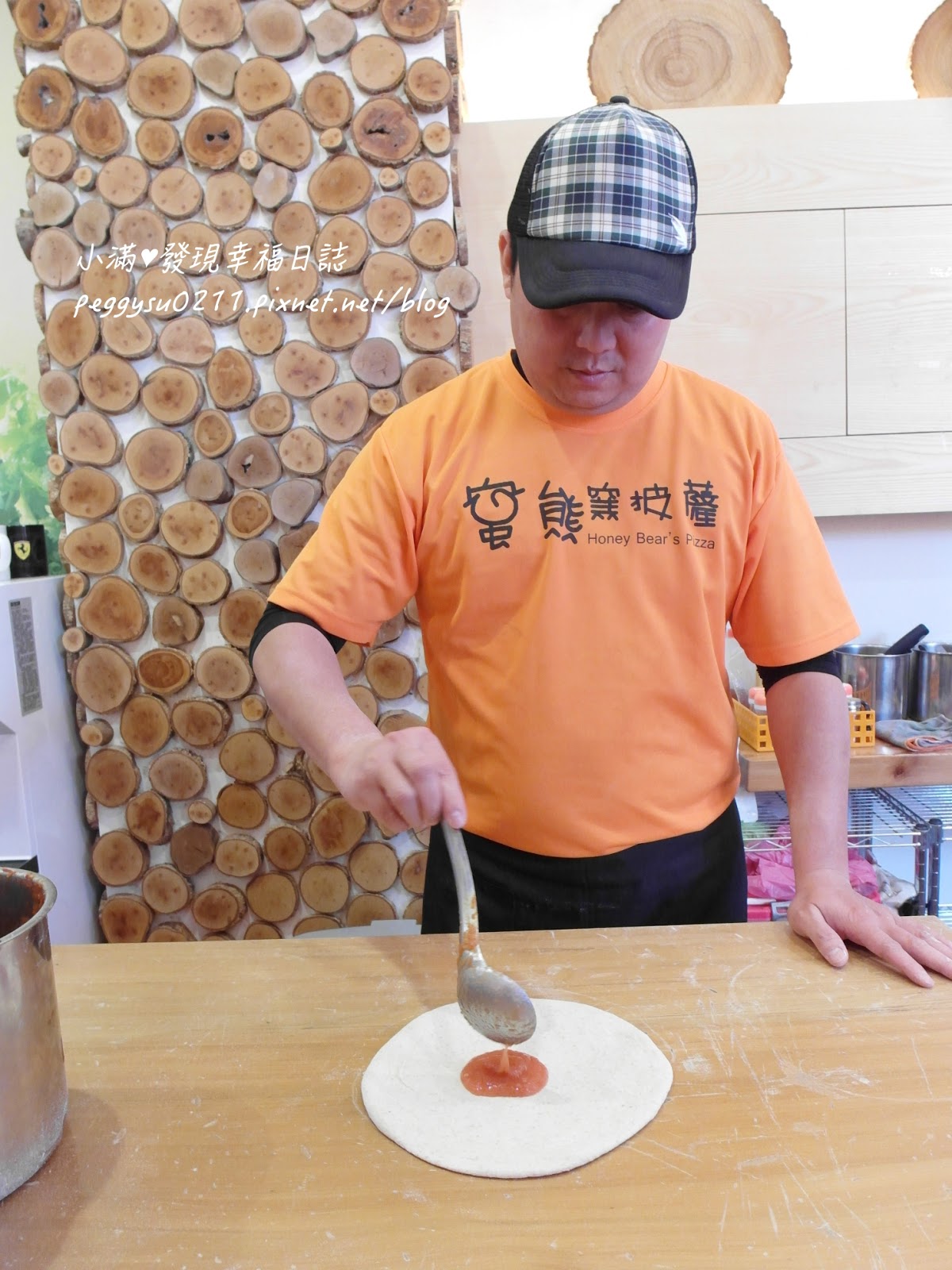師傅在餅皮上第一層就抹上番茄醬