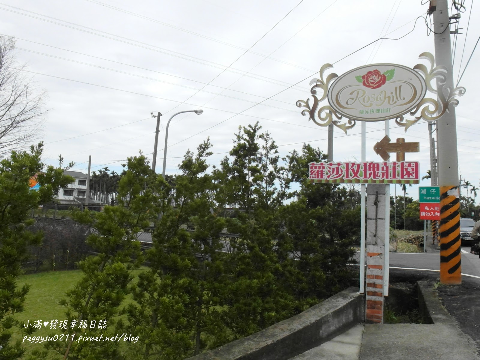 很快的我們就抵達「蘿莎玫瑰莊園」,有很大的停車場!