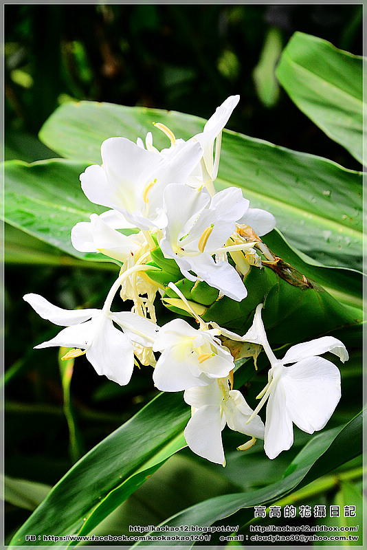 夏季的貯木池旁盛開了許多野薑花,潔白的身影點綴了池畔景色,