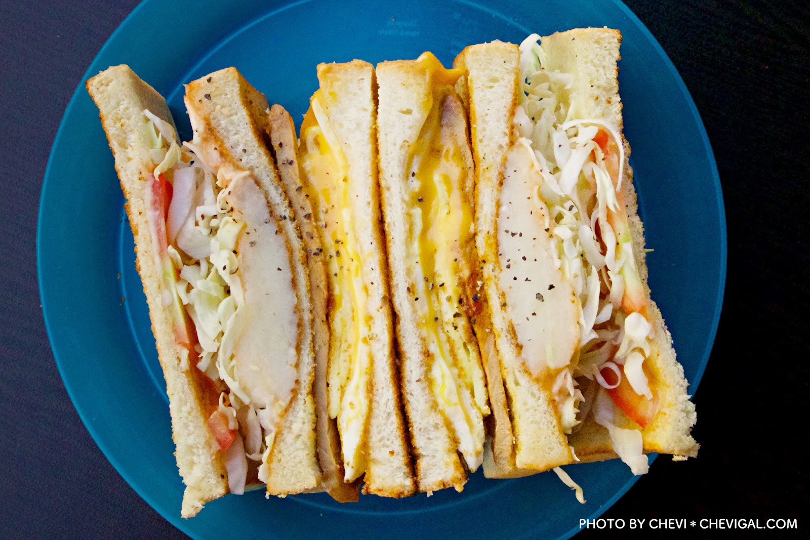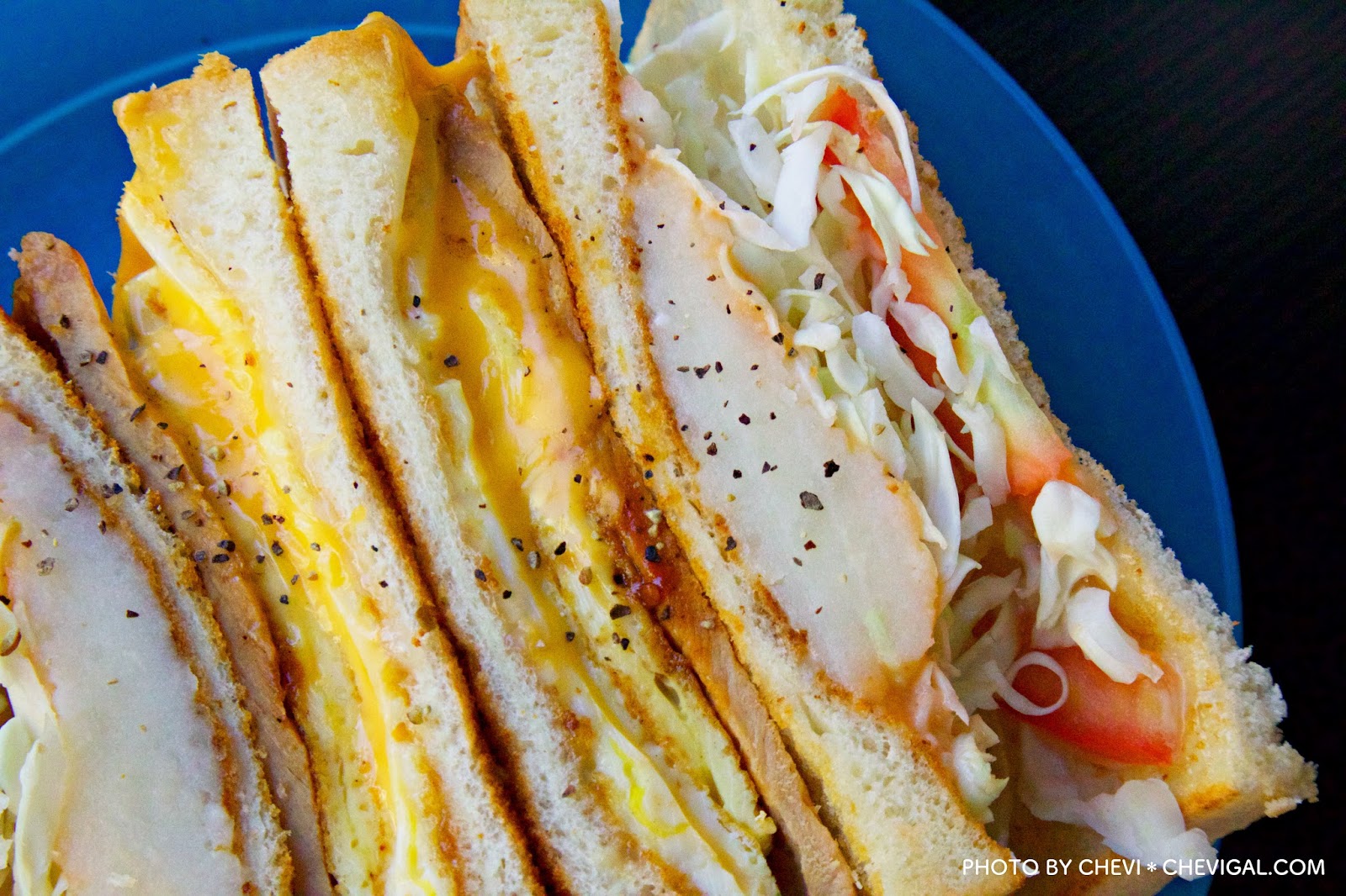 招牌總匯三明治($70+起司$10):餐點一送上桌,讓我們直呼這份量也太大份,以女生來說,根本就是兩份三明治啊!所以立馬果斷決定,直接和朋友一人一半,否則其他餐點都不用吃了啊!