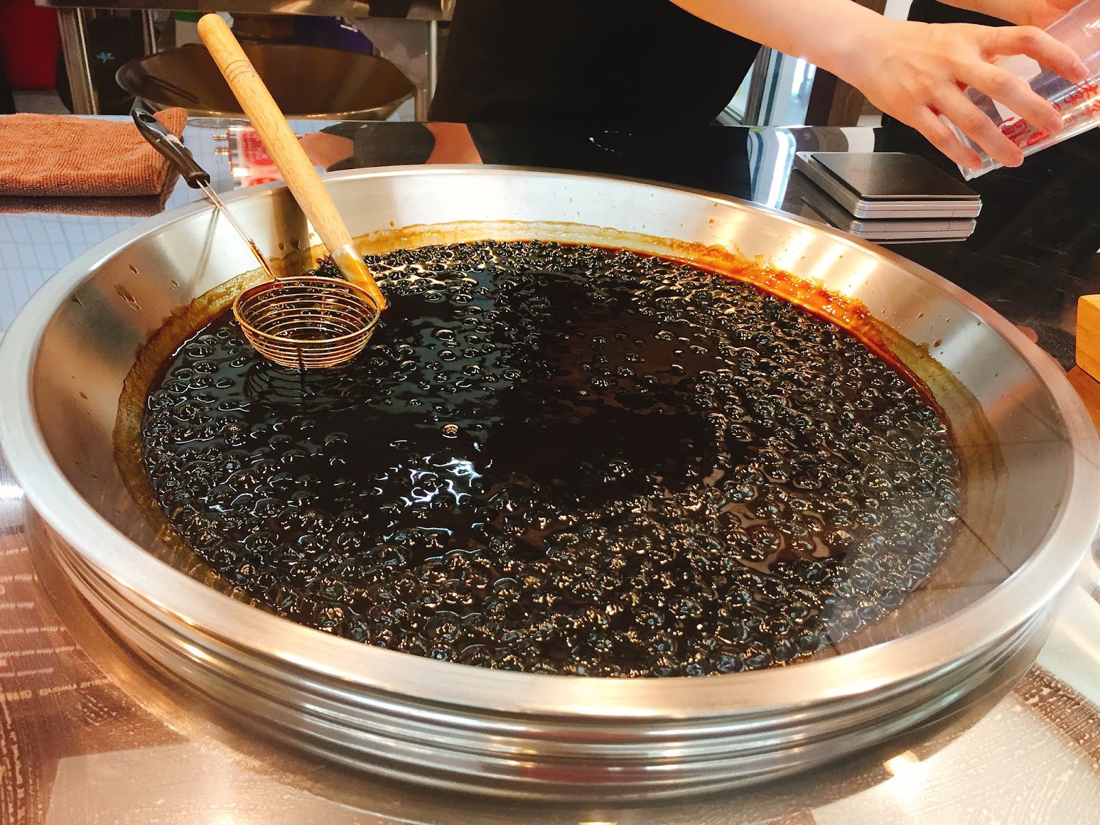 一鍋現煮的黑糖粉圓,光是排隊就可以聞到它的香氣