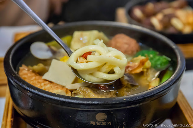 除了套餐裡面本來就附有的白飯,鍋內還有Q彈的烏龍麵,更增添了飽足感,整鍋吃完真的超級飽~