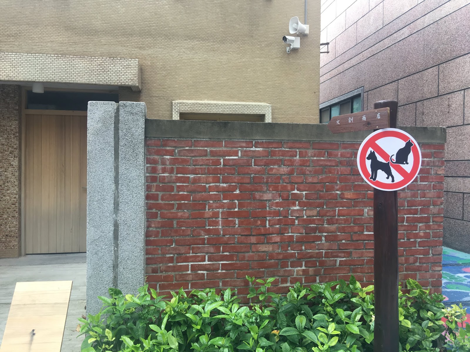 從下車的地方走來,會看到一排的一樓小屋座落在大樓之中,紅牆內是一間間小空間,很可愛的是他們都有一個自己小花園,感覺復古的一樓住戶。一間間的小屋是書店、是展示間、是咖啡廳,當然以也有的是園區相關單位的小辦公室,這裡有種培養在地人的文化氣息。