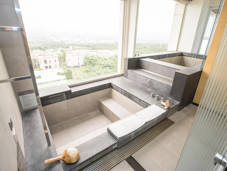 此飯店有12種不同房型供選擇,客房內也是充滿了異國的氛圍,房間寬敞舒適、精心佈置,也有私人的泡湯池、熱水浴池,部分房型有兩個浴池(熱水和冷水),寬敞舒適,溫泉水品質優良,泡完湯肚子餓了,絕對不要錯過飯店所擁有五星級料理主廚特別設計的中式料理,結合當地食材山豬、土雞、鱘龍魚等,再搭配當季新鮮蔬果食材,提供適合個人套餐及團體酒席的美食料理,吃飽喝足後也可以去附近大自然散步,享受靜謐時光。