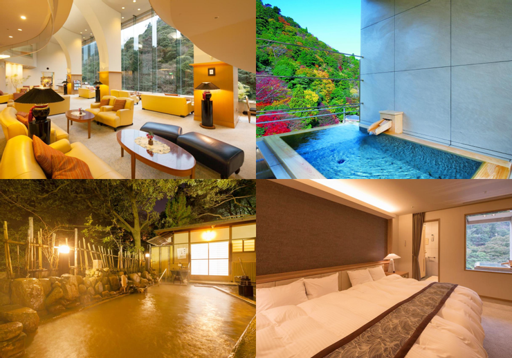 自家源泉提供 9 種不同的舒緩溫泉浴池,有風景絕佳的大浴場和露天溫泉,還有三種超高人氣的包場溫泉,包場溫泉種類分別為: 洞穴、檜木和紅酒供選擇。一泊二食的晚餐及早餐均為懷石料理,館內設有專門提供會席料理的和式空間非常具有日式氣氛,並提供以神戶牛肉為首,使用日本當季食材烹調而成的會席料理,特別推薦給喜歡生食的旅客。