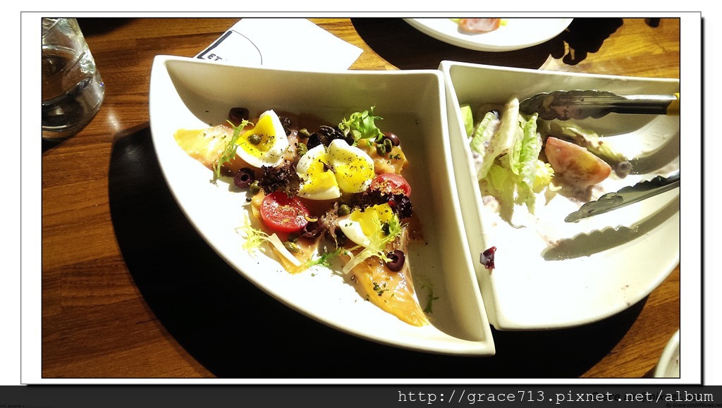 沙拉熱銷到下一道前菜上來時, 我們就吃光了, 所以..沒法子拍到拼盤效果..