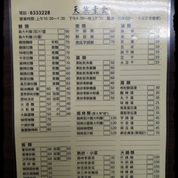 營業時間10:30~13:30;16:30~20:30