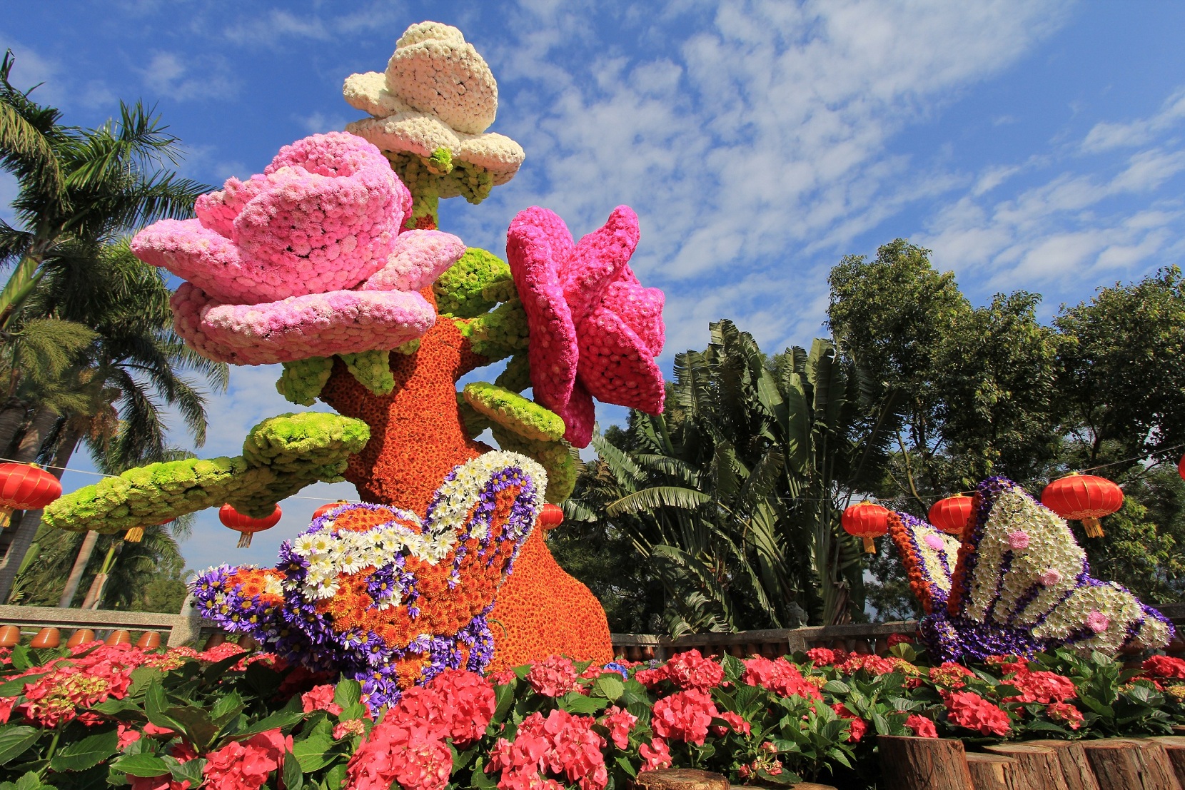 ▲全台唯一「花雕藝術節」其中高達近6公尺的玫瑰花造型的「彩菊花雕樹」成為打卡熱門景點!(圖/劍湖山世界)