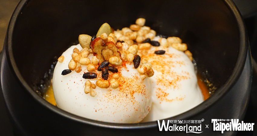 這次客座活動「韓」味十足,雙廚之一的姜珉求主廚,擅長將韓式大醬、韓式醬油…等「韓味」十足的醬料融合至西餐之中。像是「韓醬三重奏」可說是姜主廚代表作之一,他巧妙地將韓國料理最為至要的三款醬料,韓國大醬、韓國醬油與韓國辣醬融入於西式甜點中。