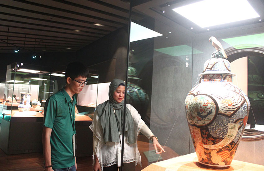 此次「故宮南院線」國際背包客文化行旅專車體驗活動不僅介紹全國唯一獨特的普渡儀式,也安排國際客動手製作驅邪保平安的五色絲、玩趣味擲筊,體驗台灣宗教文化,這群國際客更在見到由琉璃創作而成之大士爺後皆感到驚訝並直呼特別。此遊程還安排參訪故宮南院、欣賞亞洲藝術,瀏覽頂菜園鄉土館台灣早期50年代的農村風光,並騎乘鎮園之寶-水牛哥。來自韓國的김동준(金东晙)表示在偶然的機會得知這個活動,希望別的韓國人也有機會可以參加有意義的這個活動;來自印尼的Welly Arzaqi對整趟遊程感到新奇又精彩;來自吉爾吉斯的Sulaimanov.Nurbek希望能夠帶著家人與同學搭乘故宮南院線玩遍嘉義縣;來自越南Quy Nguyen原本只是想體驗,沒想到收獲滿滿的。 ▲印尼籍交換學生參訪故宮認識到亞洲藝術之美