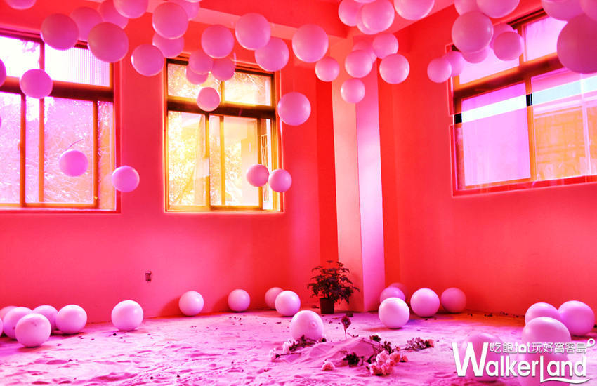 在古老的空軍一村眷村裡,竟有著如夢似幻的必拍場景出現!由藝術家李佩珊所創作的「當你墜入愛河」裝置藝術,以眷村的二樓房間為創作場域,讓氣球、彩色土壤與投射燈,再揉合舊式建築窗邊所自然映入的光影,營造出動人的場景;讓人不禁驚呼,原來這就是戀愛的感覺。這樣夢幻般的造景創作,為這古老眷村增添了許多甜蜜亮點。