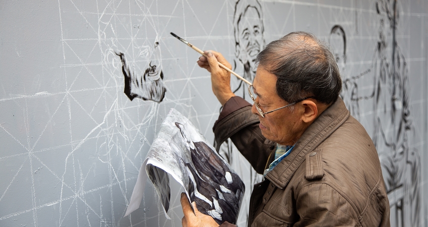 睽違4年,英國搖滾樂團酷玩(Coldplay)將在22日發表全新專輯《偉大日常Everyday Life》,唱片公司特別邀請台南全美戲院手繪電影海報看板的國寶畫師顏振發北上,將Coldplay專輯宣傳照畫在台北西門町街頭,就連Coldplay官方IG也轉發了畫作照片(展出日期至2019/12/31)。