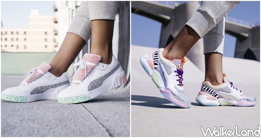 秋冬聯名新品以探索城市叢林中的野性元素為靈感,將PUMA經典鞋款,包括PUMA Suede、PUMA Nova與PUMA Cali等鞋款,SOPHIA WEBSTER巧妙將大量動物圖騰及迷彩印花融入柔美撞色,點綴亮面閃光材質及華麗粉漾絨毛設計,充分將女孩獨鍾的粉彩美學及時尚狂魂濃厚展現。