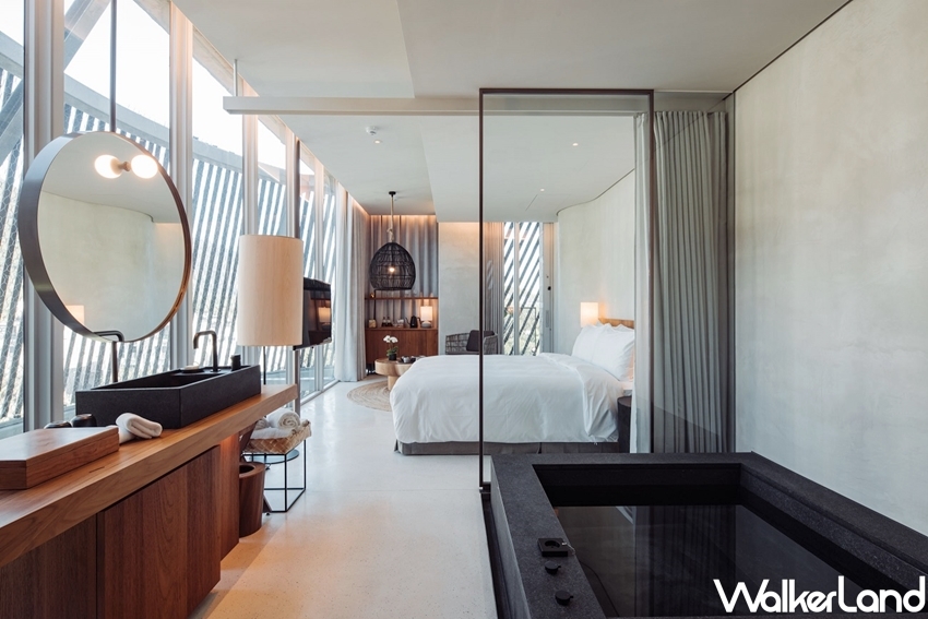 而在房型方面,「大地房」獨有的「樹洞」,則是提供旅人自處的療癒空間,藉由冥想、閱讀或沉澱自我,找回最明朗澄淨的心境。此外,客房內裝不僅依據各空間的格局量身設計,更汲取大自然元素作為設計構想,例如:面對窗外大片綠意的「森林房」、宛若蘭陽平原般遼闊無邊的「平原房」以及可遠眺山海島嶼的頂樓「日出房」等等。