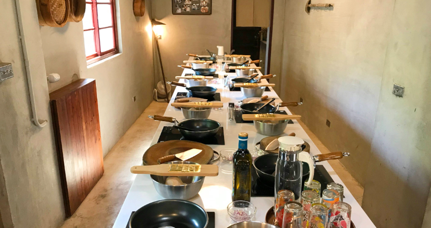 雙口呂文化廚房設計包含年度課程如紅龜粿,及節慶課程如芋粿巧、番薯粿、草仔粿、米篩目(米苔目)等,無論你有無烹飪基礎,都能夠在雙口呂創辦人夫妻條理有序的分享之中重新認識台灣米食、傳統烹煮器具、動手實作和品嚐,以粿作為引導,讓人們待在三合院做粿、吃粿、品嚐粿的背後,我們共同還記得的兒時生活與節氣故事。