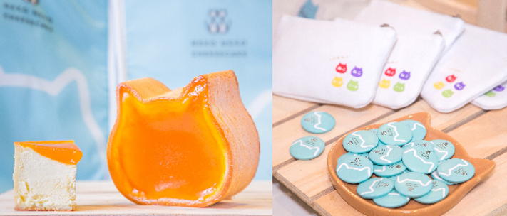 ▲除了「彩虹貓」四入組之外,在新光三越中港店快閃店現場還可同時買到5吋「布里貓起司蛋糕」及四入款「經典貓起司蛋糕」。 ▲於每週五、六、日舉辦限時「貓貓抽獎活動」,凡憑當日購買發票,有機會獲得「貓貓保冷袋」、「貓貓蛋糕盤」、「貓貓零錢包」、「貓貓徽章」!【NEKO NEKO CHEESECAKE台中快閃店】