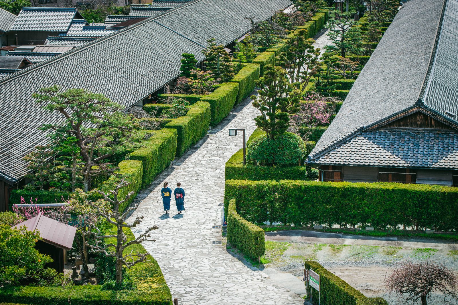 ▲武士長屋前的石板路和羅漢松牆,很適合租借松阪木棉和服來此拍照留念。(圖片提供/三重フォトギャラリー)座落在松坂城下町的御城番屋敷,約於江戶時代末期1863年建造的傳統長屋,當時是擔綱松坂城安全巡衛警備的武士宅邸,不僅被列入日本國家重要文化財,也是現存江戶時代武士屋敷中最大規模。直至今日150多年後,武士後代仍居住在此,其中一座宅邸由松阪市政府租借,並且對外開放參觀,同時也是《神劍闖江湖最終章》電影中,由有村架純飾演劍心之妻「雪代巴」照顧弟弟的拍攝場景。若是喜歡這部作品的朋友,更不能錯過!