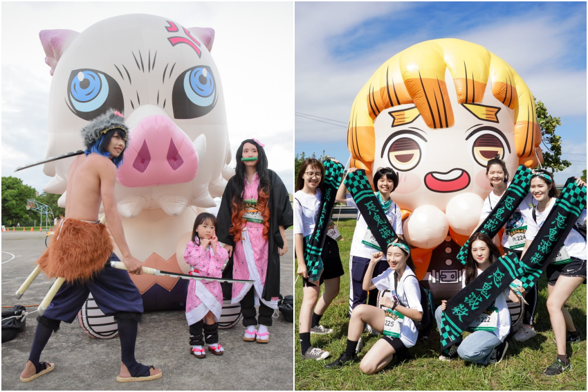 「鬼滅之刃全集中路跑」第二彈將延續首屆路跑的「Fun Run」形式,並加上更多遊戲互動內容,讓本次路跑更佳多元化!2022年3月5日的台北路跑現場除了設置經典動畫場景外,炭治郎、禰豆子、善逸及伊之助四大主角3米高大型氣偶再次齊聚現場。此外,本次路跑活動的主題人物「炎柱」和動畫《鬼滅之刃遊郭篇》要角「音柱」,首次化身為大型氣偶與粉絲們見面,現場提供超過10處拍照打卡點,就是要讓粉絲從起點到終點全程拍不停!