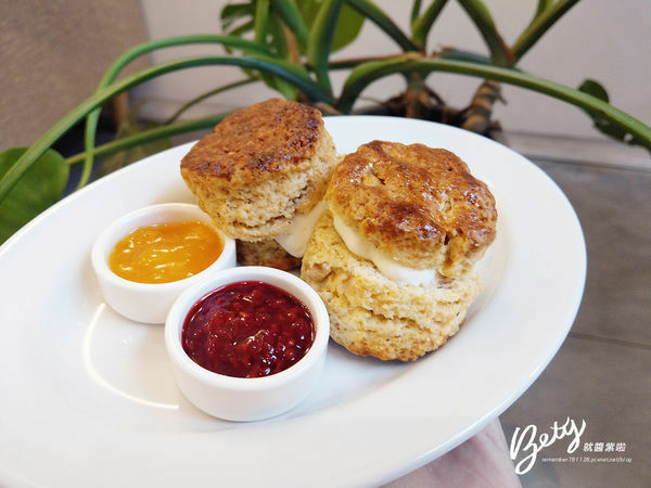 看著鮮奶油從司康裡流出來,真的是太誘惑了,其實我也不太知道司康的正確吃法,反正喜歡什麼就全部塗上去就對了,這兩個司康味道差異不大,唯一能分辨的就是有一個有胡桃顆粒味道比較香。<全文介紹>