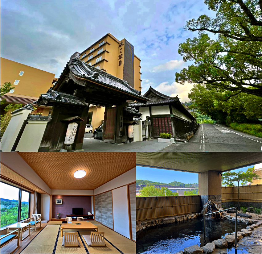 江戶時期土佐藩家老居所原地打造,擁有高知市區唯一天然溫泉的日式旅館。周邊另江戶時代城主也醉心的清流鏡川、翠綠筆山以及境內優美日式庭園,合稱三翠,迎賓大門及武家屋敷遺跡長屋為國家指定文化財,飯店週邊能望見南海名城,現存12木造天守―高知城,住上一宿能感受土佐城下町風韻,以土佐歷史打造的溫泉棟「湯殿 水哉閣」泡溫泉舒放旅途疲憊身軀,品嚐會席料理佳餚,為來高知旅遊不能錯過的住宿之一。