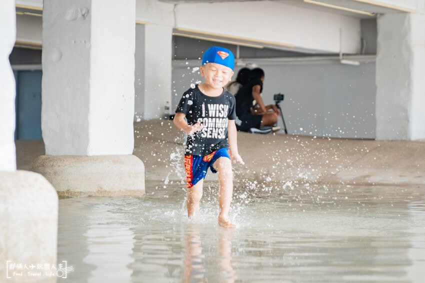 假日這裡人蠻多的,抓住暑假的尾巴孩子們都來這玩水了! 這裡不強制要穿著泳裝就能下水玩~備有盥洗室和淋浴設備可以沖洗,而且還有貼心家長的遮棚等待區