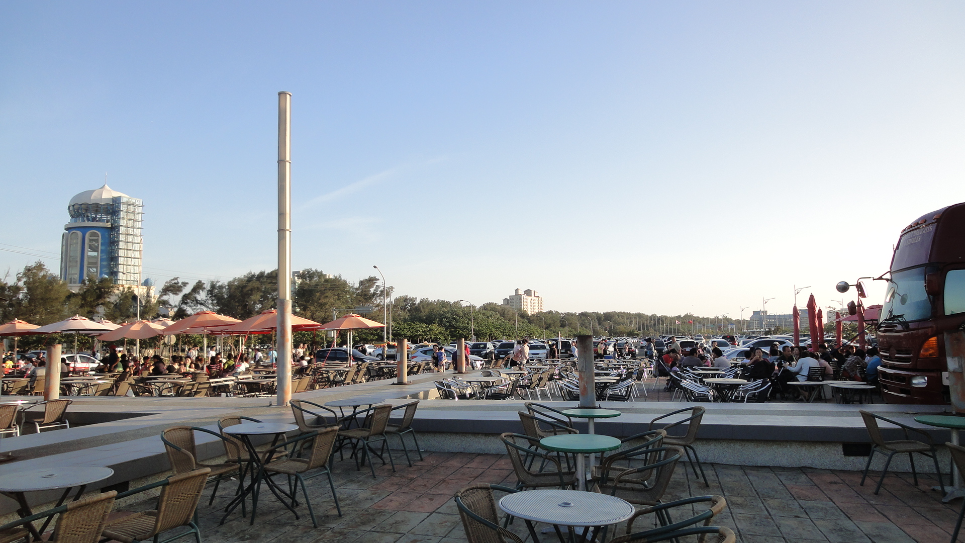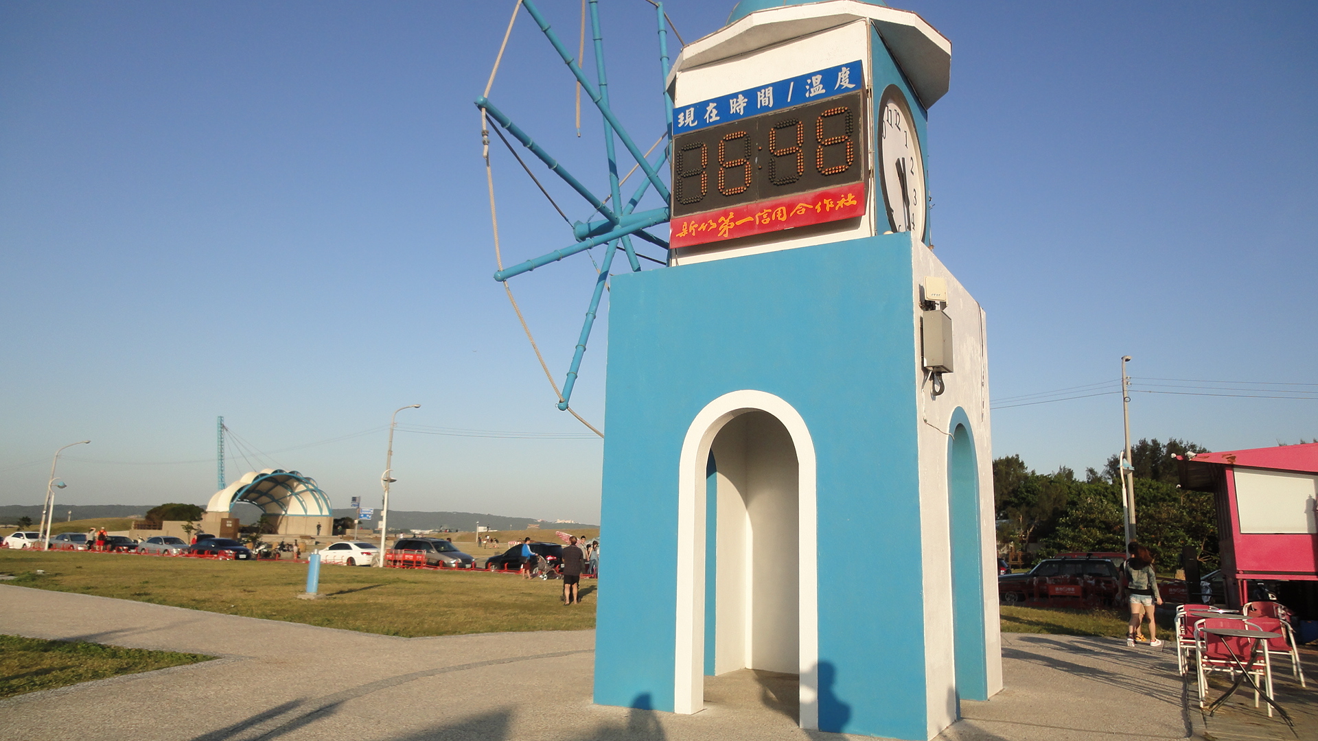 除了騎腳踏車,南寮漁港這邊也有大大的廣場可以吹海風喝咖啡唷!