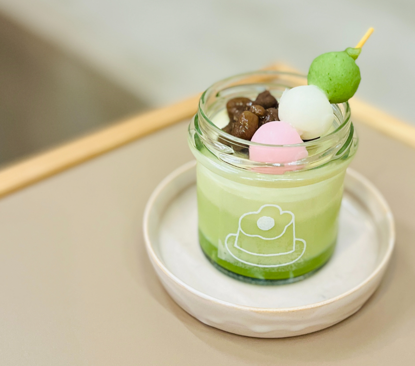 除了原味布丁外,「里山布丁抹茶」也是不容錯過的!嚴選靜岡出產的抹茶,搭配佐古谷牧場的牛奶製成抹茶布丁,上面鋪上甜度適中的綿密紅豆及三色糰子,打造多層次的美味。