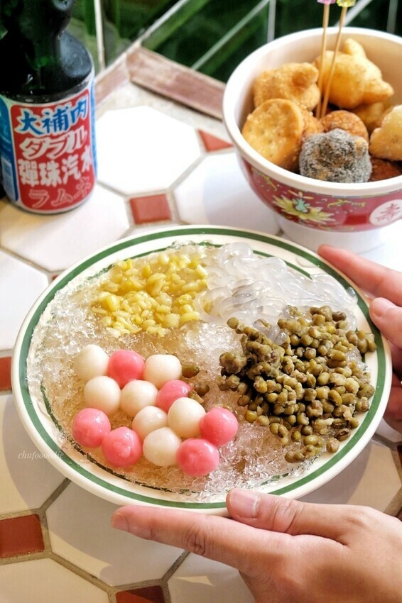 囍室綠豆蒜剉冰和地瓜球&白糖粿都是百元有找,堪稱屏東市裡最具特色的銅板美食,而且他們的內用空間展現滿滿的民初婚慶囍感風格,來囍室吃綠豆蒜還能各種拍照打卡~樂趣十足👍<全文介紹>