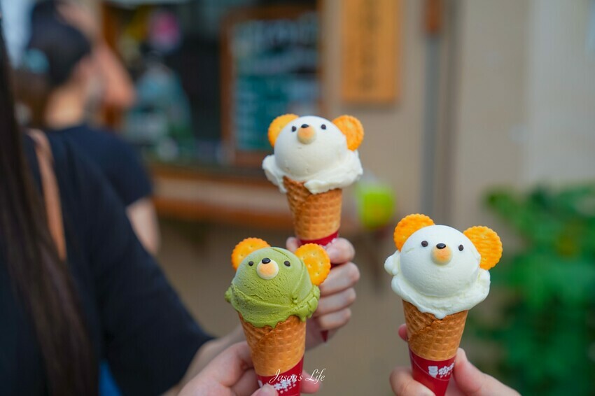 勝利星村日式老屋超萌冰店,有多種口味冰淇淋可供選擇,可以加價升級成小熊造型冰淇淋,滿賣萌的。<全文介紹>