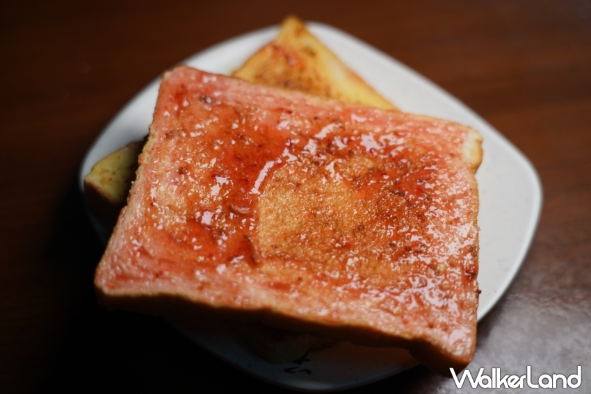 芋頭控一定會愛「阿斗伯冷凍芋」的招牌冷凍芋,一碗有三大塊、熬煮兩個小時的芋頭,芋頭香氣濃郁,且每一塊都鬆鬆綿綿;綠豆湯則有種家常的味道;烤土司和冷凍芋一樣,幾乎每桌一份。烤至帶點焦香的吐司,兩片分別抹上奶油和草莓醬,乍看簡單、兩種口味合在一塊卻意外契合,整體甜度亦恰到好處。