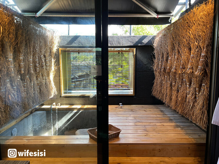 邊泡湯邊欣賞帶有仙氣的山景,真的是非常的舒服,戶外的涼風可以直接吹進湯屋內,一掃湯屋內的熱氣真的是非常舒適。