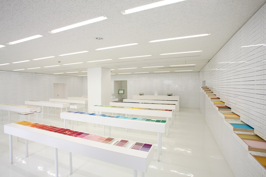 ▲全淨白的空間裡,搭配色彩鮮豔的紙張,宛如置身於一座紙的圖書館。®Tadahisa Sakurai