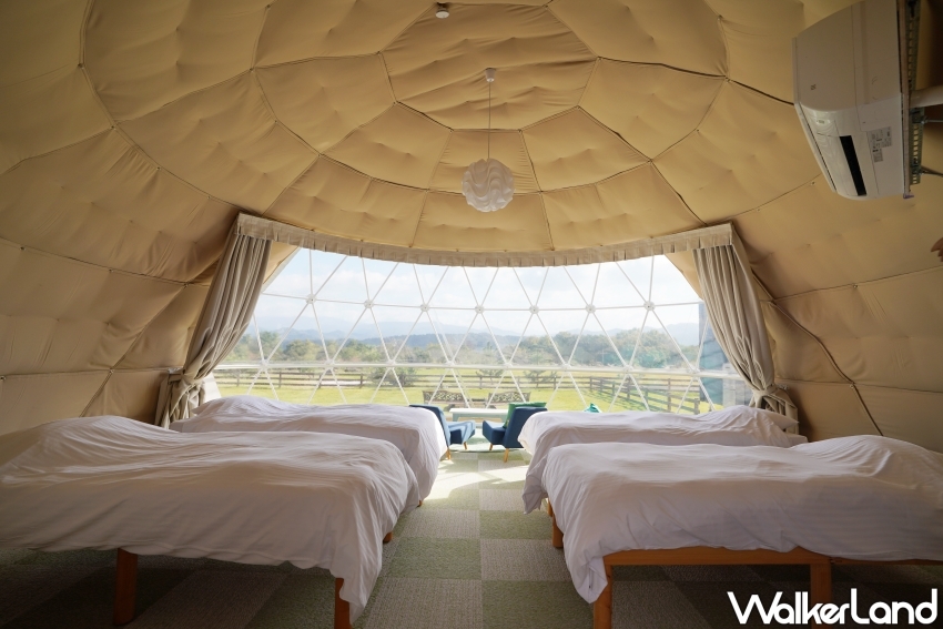 「Moiそらやま」豪華帳篷內有4張單人床,可入住2至6人,入住都會提供柴火(約可燃燒1小時),並且免費租借飯盒煮飯套組、贈送棉花糖,每個人都能輕鬆體驗在大自然燃燒營火的樂趣;此外,其中2間附設私人遛狗場、為毛小孩友善住宿,狗狗可盡情奔跑玩耍,同時也提供寵物專用備品。