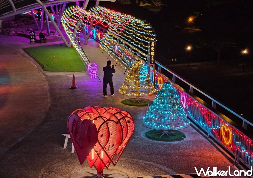 ▲▼辰光橋情人節光雕展於1/25~3/23期間免費點燈 / 新北高灘處 提供、WalkerLand窩客島整理