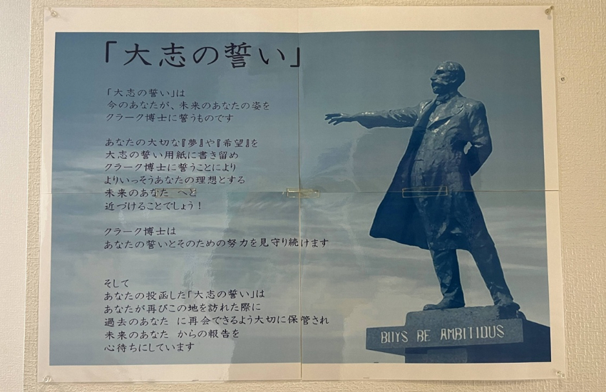 留下「胸懷大志的誓言」,這是一個羊之丘展望台的特殊項目,有點類似時空膠囊的概念。先購買一張空白誓言,寫下你的誓言、夢想或希望,並依照三個步驟:完成誓言、敲鐘、投入克拉克博士銅像底座的投遞口,這張記註你的姓名與許願日期的誓言,將會一直保留在羊之丘展望台,直到未來某一天你回來尋找他。