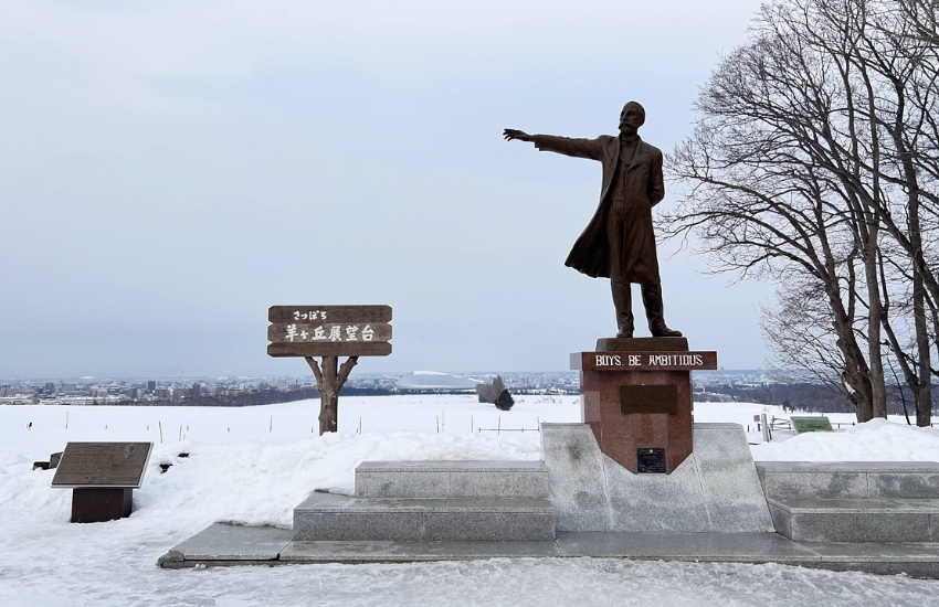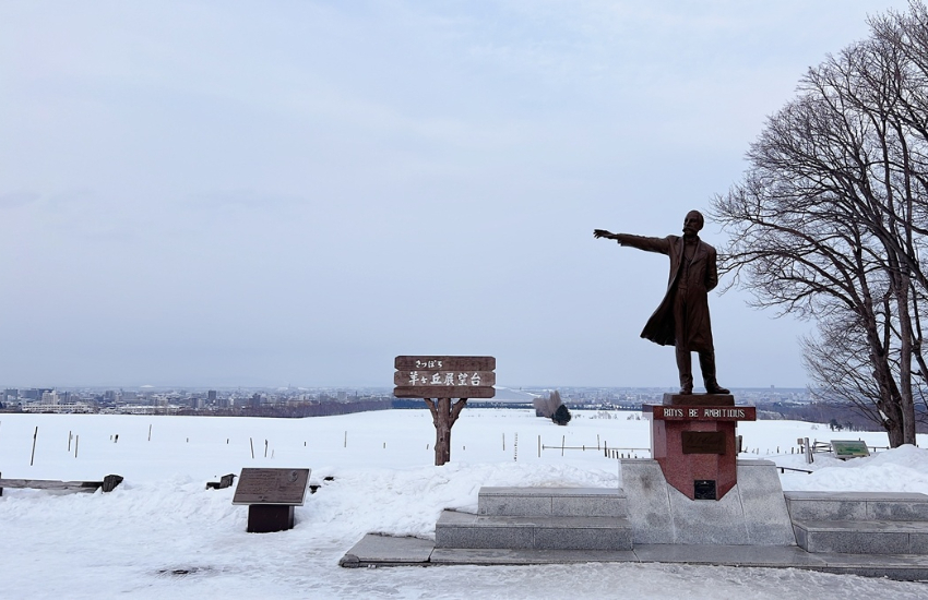 提到羊之丘展望台,就不得不到 「克拉克博士銅像」(William S. Clark)前致意。這位美國教育家曾在北海道推廣農業技術,被譽為北海道開拓之父,所留下著名的話:「Boys, be ambitious!」(少年們,志存高遠!),更成為了羊之丘展望台的核心標誌。許多旅人會學著博士銅像姿勢拍照,左手稍息、右手高舉,指向遠處,一同並肩看向遼闊的遠方,並默默在心中回應他所說過的話,光是幾秒鐘的共鳴,也已讓我心中滿是澎湃。