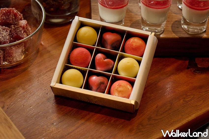 甜點區以手工打造的母親節限定甜品驚艷登場,包括抹茶莓果塔、莓果優格慕斯與粉紅白松露巧克力,每一款都宛如藝術品般誘人,再加碼贈送的松露巧克力禮盒更是不容錯過。該禮盒由甜點主廚親手製作,內含9顆創意巧克力,其中紅心芭樂夾心口味選用台灣小農果醬,巧妙融合苦甜與果香,每一口都帶來細膩的驚喜,無論自用或送禮皆誠意十足。