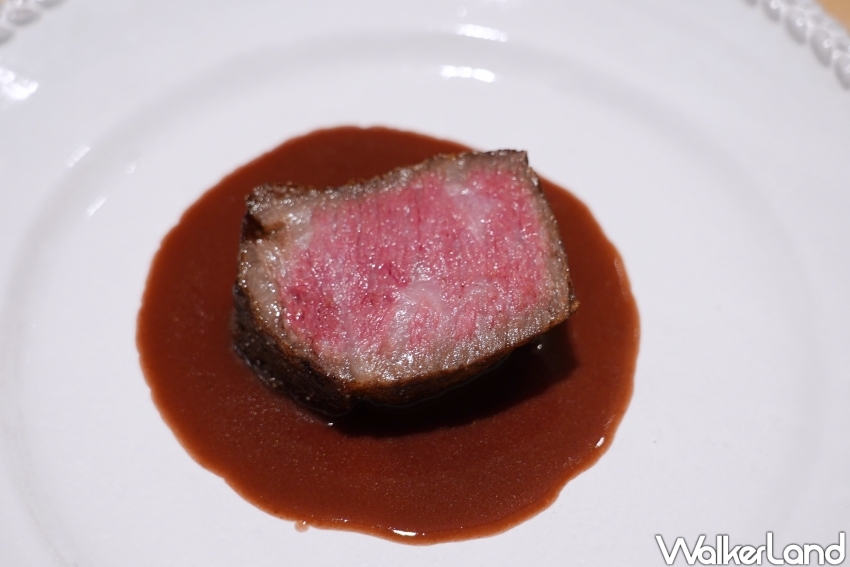 ▲Li.nu主菜「Li.nu 灣本牛」,耗時七小時煎製而成/ WalkerLand窩客島 楊婷雅 拍攝▲Li.nu焦糖布丁「原始 蜂蛹卵」採用的雞蛋自蜂農以蜂蛹飼養的雞隻/ WalkerLand窩客島 楊婷雅 拍攝