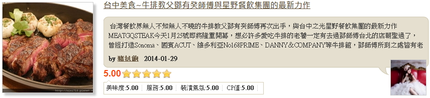 台灣餐飲界無人不知無人不曉的牛排教父鄧有癸師傅再次出手,與台中之光星野餐飲集團的最新力作MEATGQ STEAK今天1月25號即將隆重開幕,想必許多愛吃牛排的老饕一定有去過鄧師傅台北的店朝聖過了,曾經打造Sonoma、國賓A CUT、維多利亞No168 PRIME、DANNY&COMPANY等牛排館,鄧師傅所到之處皆有老饕,現在要品嚐鄧師傅獨創的老饕牛排不需要再跑到台北了,在台中即可輕鬆優雅的享受。