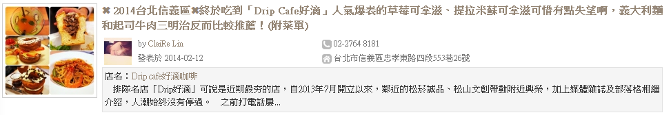 台北信義區:Drip Cafe 好滴咖啡