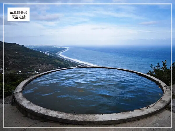 台東縣太麻里鄉【台東景點】華源觀景台-天空之鏡,遠眺太平洋湛藍美麗的海岸將W型華源海灣盡收眼底,蓄水池的倒影與海灣構成美麗的景色,所謂的台東藍完全展現在你眼前。台東打卡景點
