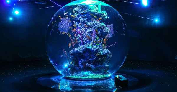 神戶átoa沉浸式藝術水族館絢爛煙火演出,還有可愛水獺造型甜點子組合。