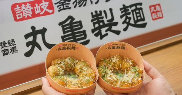 豆皮波堤吃起來!Mister DonutX丸亀製麵 烏龍麵口味波堤,鹹口味甜甜圈吃爆。