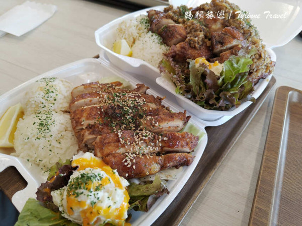 夏威夷便當 夏威夷盤 夏威夷餐 Blue Water Shrimp 夏威夷雞肉餐盤 超大份量 厚切雞排 永旺夢樂城沖繩來客夢 購物中心 購物商場 AEON MALL 日式和風雞定食 蒜香漬雞定食 雙倍肉量 雞腿肉 雞排 軟嫩多汁 檸檬 美食街 胡椒 高麗菜 馬鈴薯泥 美式料理 踢賴旅遊 Tylinne Travel